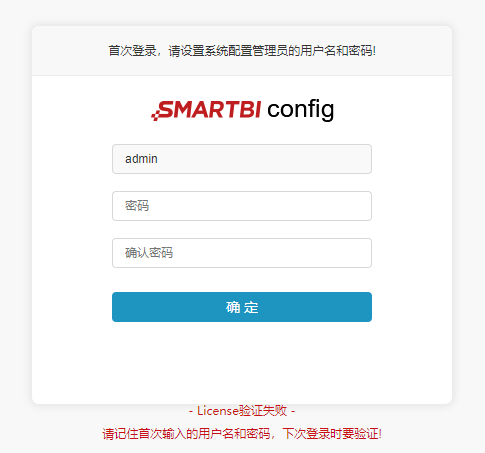 首次安装启动 Smartbi,通过浏览器访问时,会跳转到 Smartbi Config 页面,并提示设置该页面访问密码,如下图: