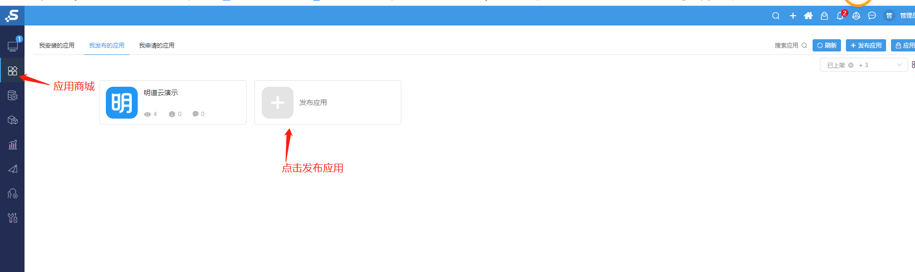 对于数据填写完成后,点击提交 。应用管理员审核完毕即可,在应用市场中显示。这样你的应用也可以被其他人安装使用了。