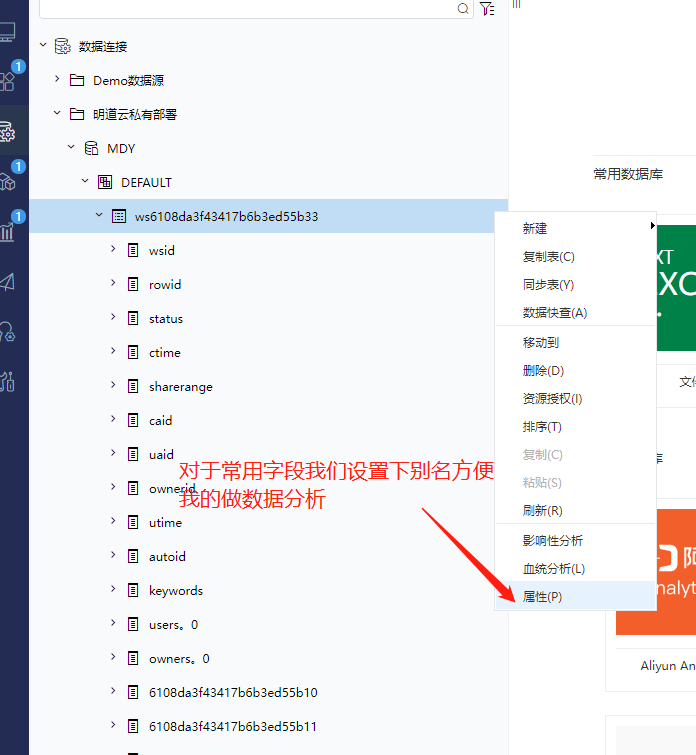 以查询 MongoDB 数据库 mdwsrows 中的送修单*为例。该表中的数据如下图所示 放到我们的数据资源中,然后对于常用字段设置下别名,具体如下: