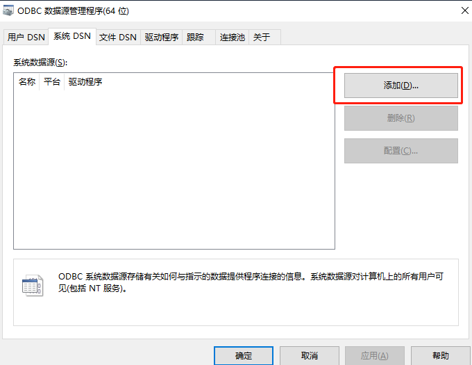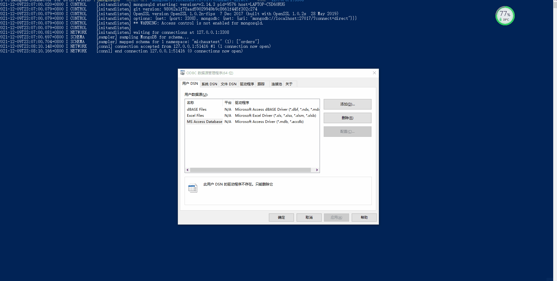 创建一个系统 DSN,指向于 MongoDB connector for BI 的命令行中的端口,即 localhost:3308