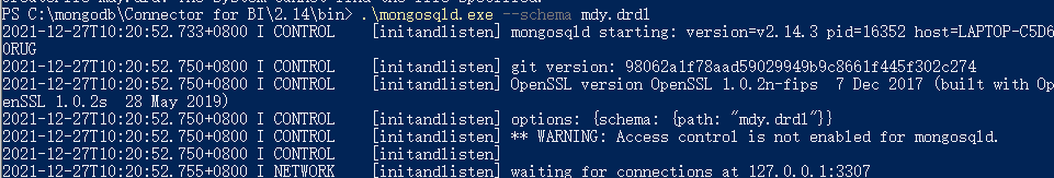mongosqld.exe --schema schema.drdl(执行前需要先打开mongodb数据库服务)