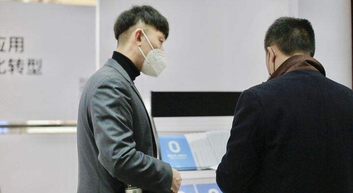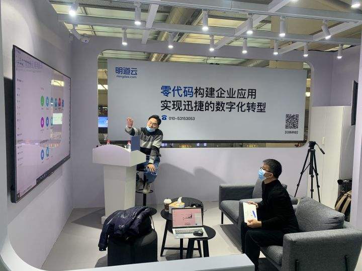 明道云店员正在为客人介绍明道云和零代码 APaaS