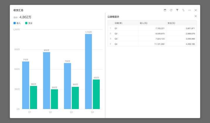 将统计图背后的数据以表格方式呈现,方便用户快速查看具体数据。