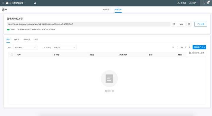 外部用户可以进驻应用了,但我们还需要规范管理他们,来保证应用安全性。目前,外部门户提供以下两种管理功能: