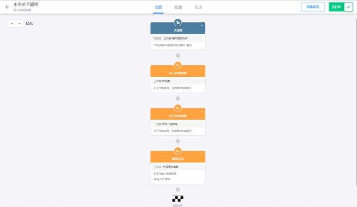 同时,因为在子流程中我们需要使用到主流程的数据,所以我们在子流程中就需要去做传递关联项用以绑定关联关系。最后我们在子流程内只需要完成查找及新增后,流程就结束了。