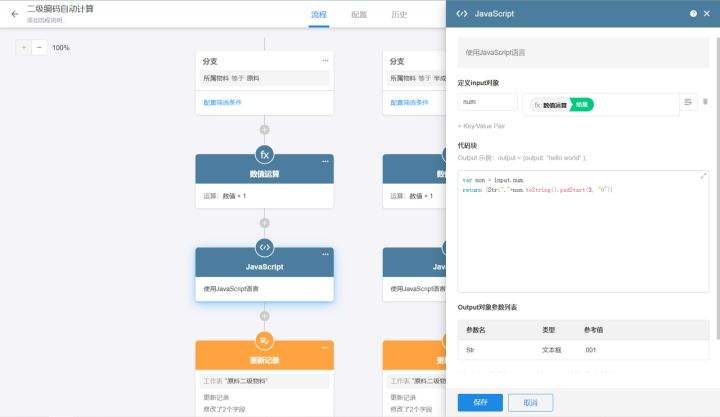 最后,将计算数值及转化后的文本编码更新至触发数据的对应字段内,物料的编码及划分就完成了。