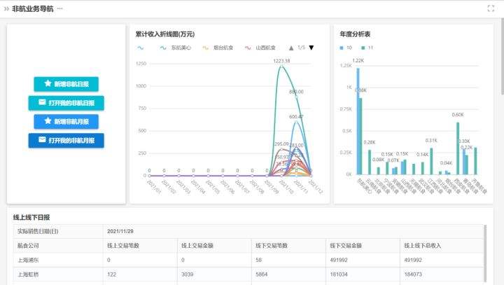 我们根据营收项目制作了日报及月报填报表单,用以改善之前上级公司提供 Excel 分发给下级公司填报数据再做整合的繁琐操作。这大大提高了数据的时效性及准确性。