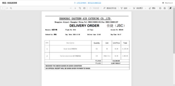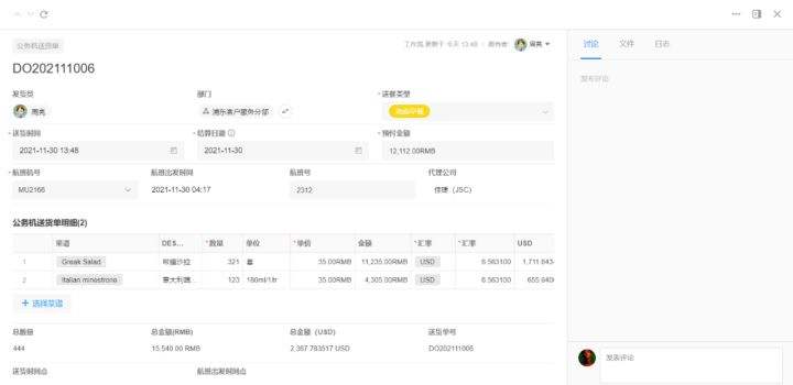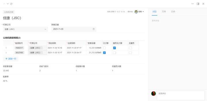 航空业务是除非航业务以外的主要营收,这部分主要是收集为航班提供配餐服务等数据。