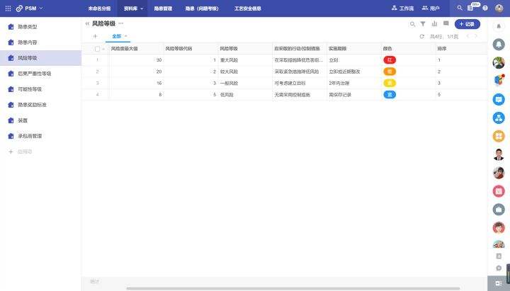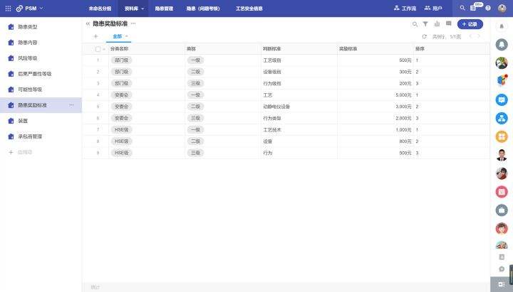 隐患管理系统需要有明确的类型管理、后果严重性等级及风险等级,也需要一定的奖励标准。