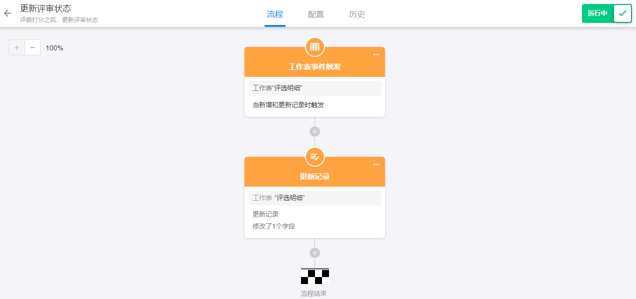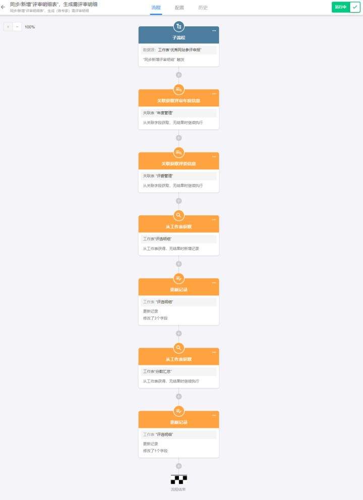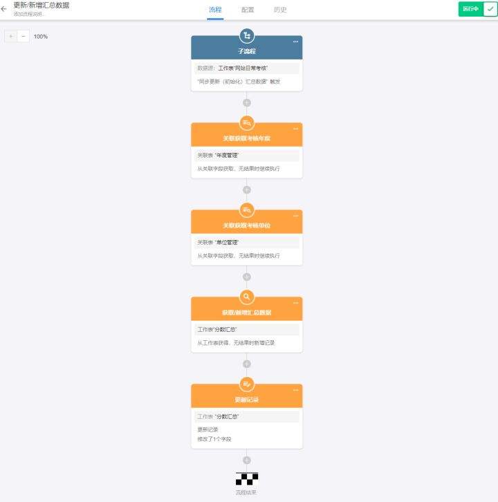 图 14 工作流同步更新分数汇总表## 12.配置“最终得分计算公式”