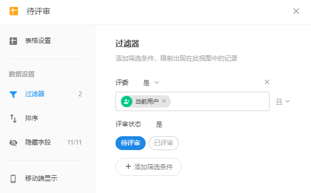 图 10 待评审视图过滤器配置页面
