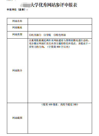 图 4 优秀网站评选参评申报表(原表)