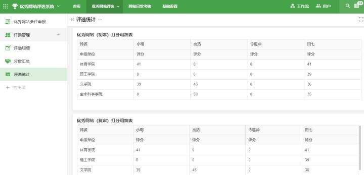 此表主要是统计“初审/复审”各评委打分明细,如下图: