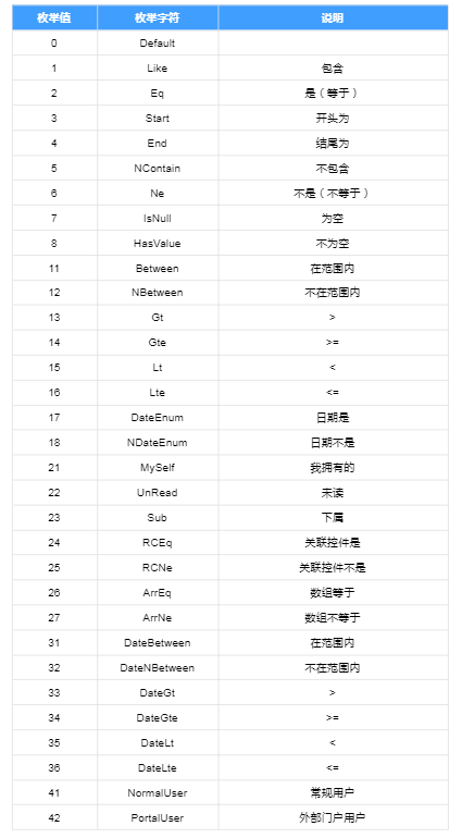 //5. 多条关联表控件配置查询 筛选类型只能(包含 不包含 为空 不为空)