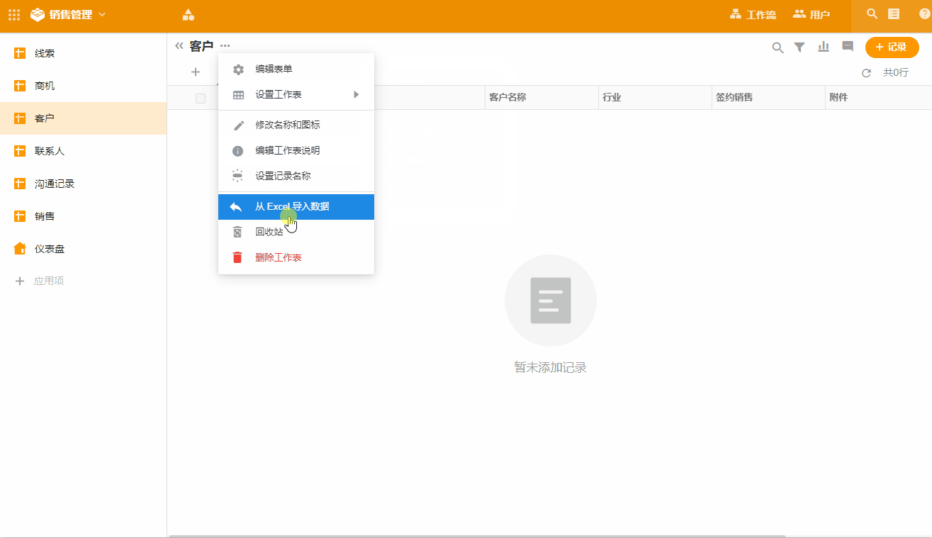 明道云的视图和记录操作展示应用结构都创建好后,就可以开始进行数据迁移了。