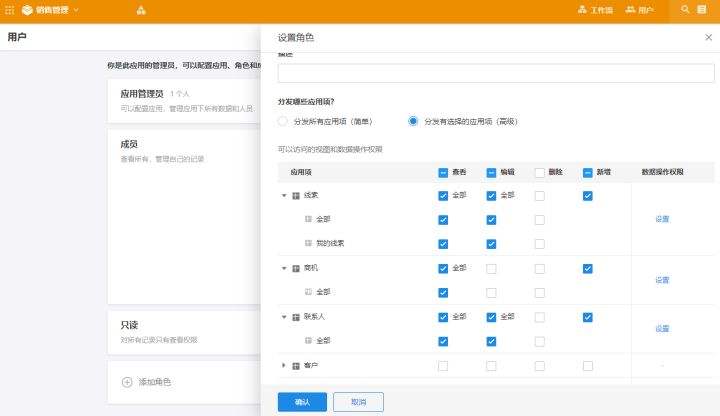和黑帕云配置角色权限不同的是,明道云能精确控制每个用户可增删改查的工作表视图、数据、甚至字段。另外,明道云还支持控制用户数据录入、数据导出、评论和查看日志等权限。