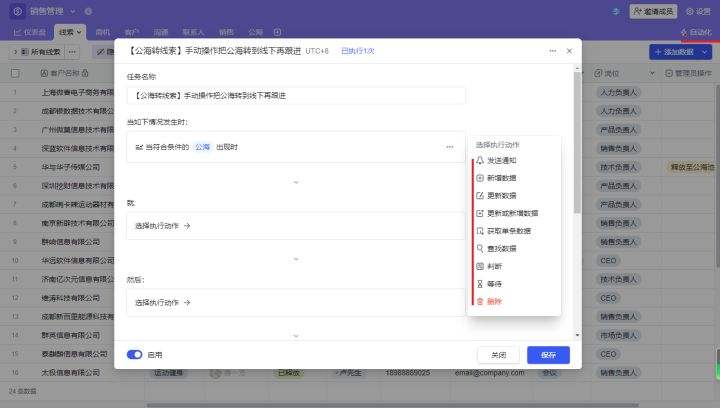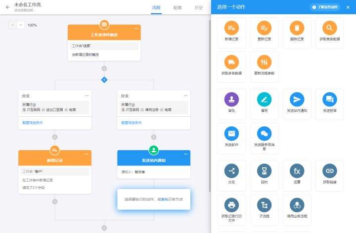 自动化功能可以帮助用户自动完成数据处理和流程推进等繁杂的人工操作。