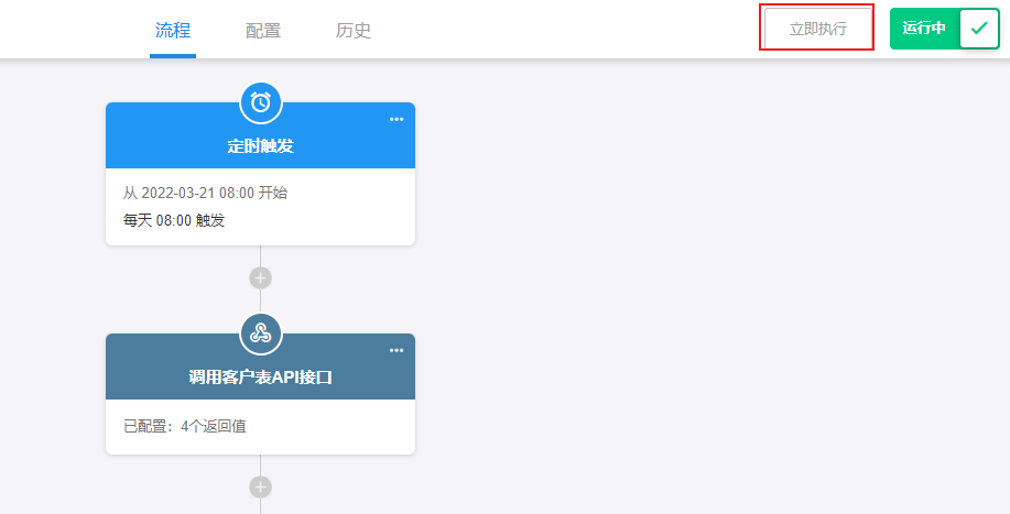 注意:待数据录入完毕后,切记关闭或删除此工作流,避免每天重复执行。