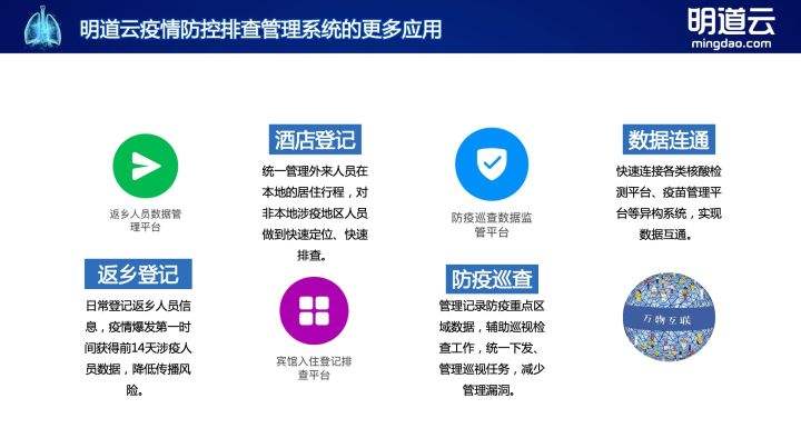 明道云利用其产品的灵活性和私有部署的安全性和稳定性,助力多个人口百万级的行政区域,构建起包含数据收集、排查、转运、上报、隔离、核酸检测数据自动回传的综合性疫情防控管理平台,为疫情防控排查构建起了数字化堡垒。本期直播将邀请明道云深圳、郑州业务总经理兰倚担任直播嘉宾,分享这套综合性疫情防控方案。