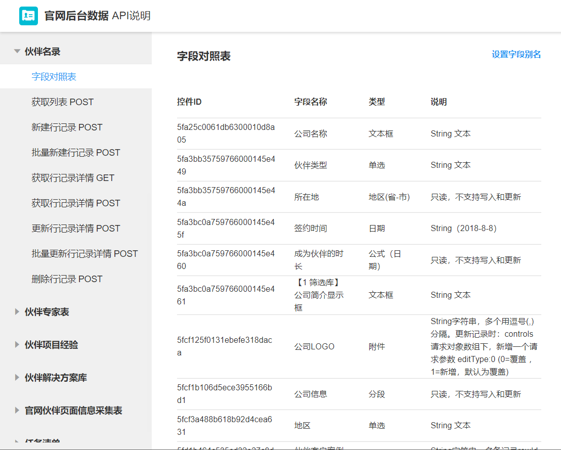 这玩意儿一听上去很高大上,但其实技术并不复杂。只需要在明道云上建立一个“官网后台数据管理”应用,配置好字段,再由研发人员根据系统自动提供的 API 接口,写入网页代码上即可。