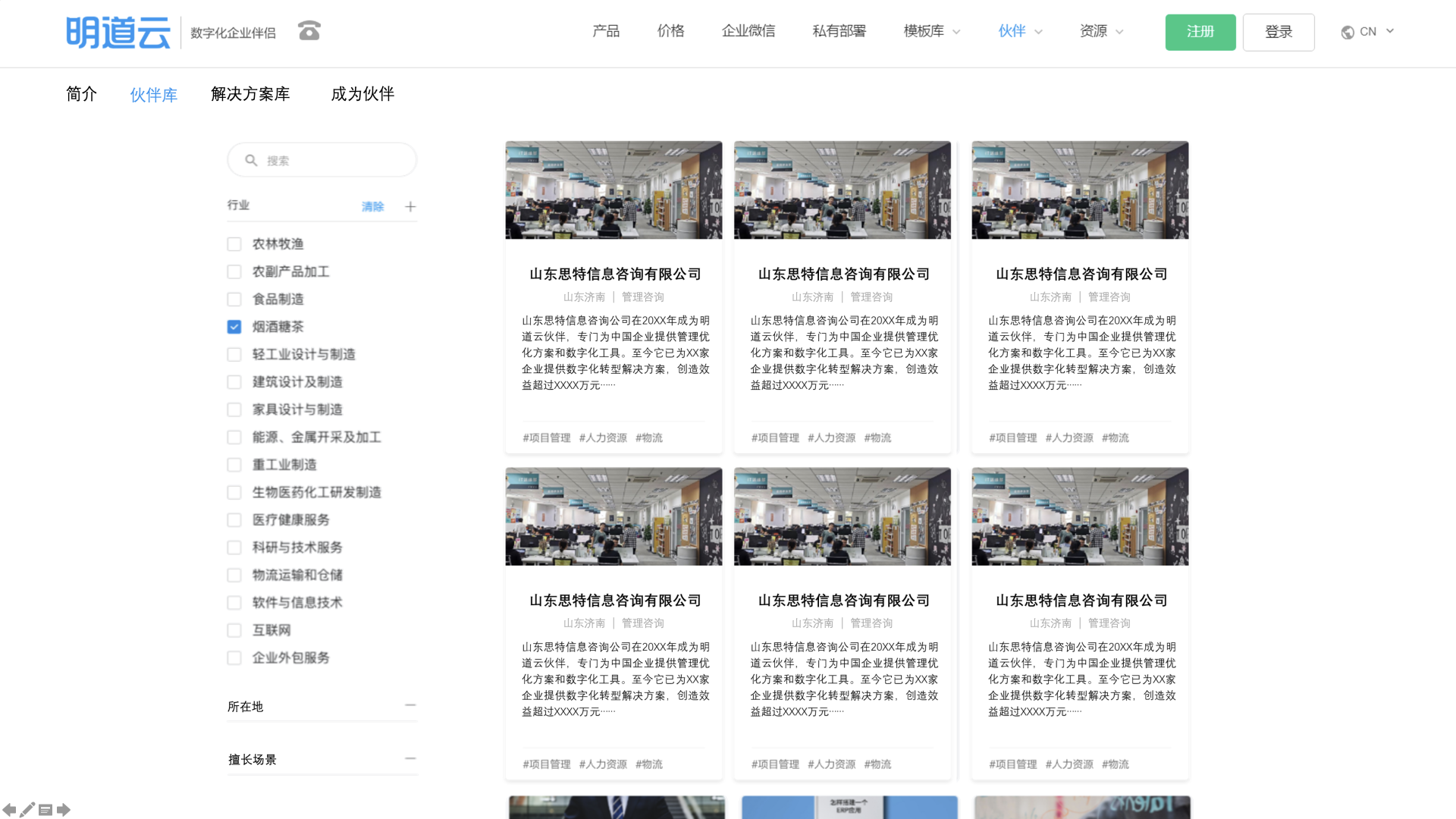 我们优化了伙伴名录、伙伴解决方案库和案例库的筛选器交互体验,访客们用得更舒服。