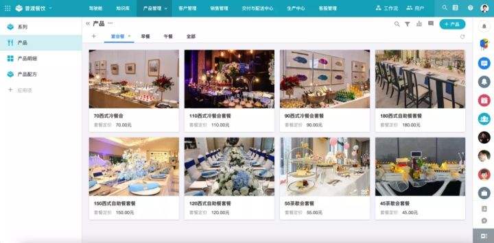 普渡餐饮的产品目录是有独立菜品和套餐组成的综合菜单。员工早午餐可以从数十种套餐中进行选择,宴会则可以选择套餐或者自选的菜品组合。大多数客户会倾向于选择订购套餐。