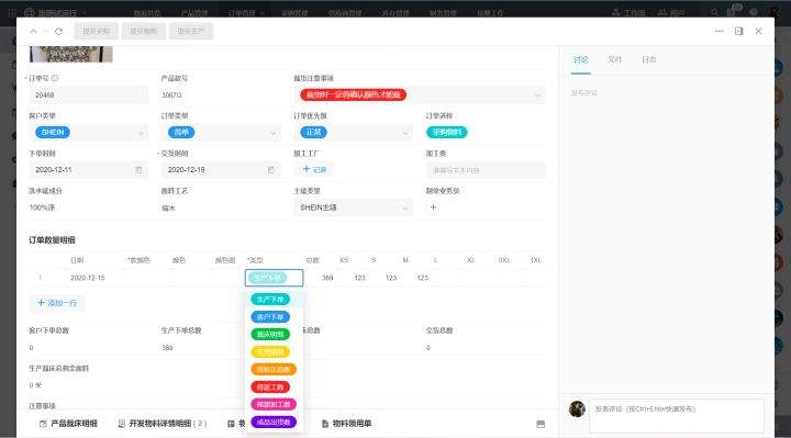 相关生产进度及交货数量则在每一步工作完成时,由工作流自动同步至生产单内。生产单内会显示相关内容明细数量,各环节员工仅需完成各自工作,填入相关数据,其余数据都将由工作流自动带入完成。至于订单进程,它会随着每一步环节的完成而自动更新,让销售部门更准确地把控每张生产单进度。
