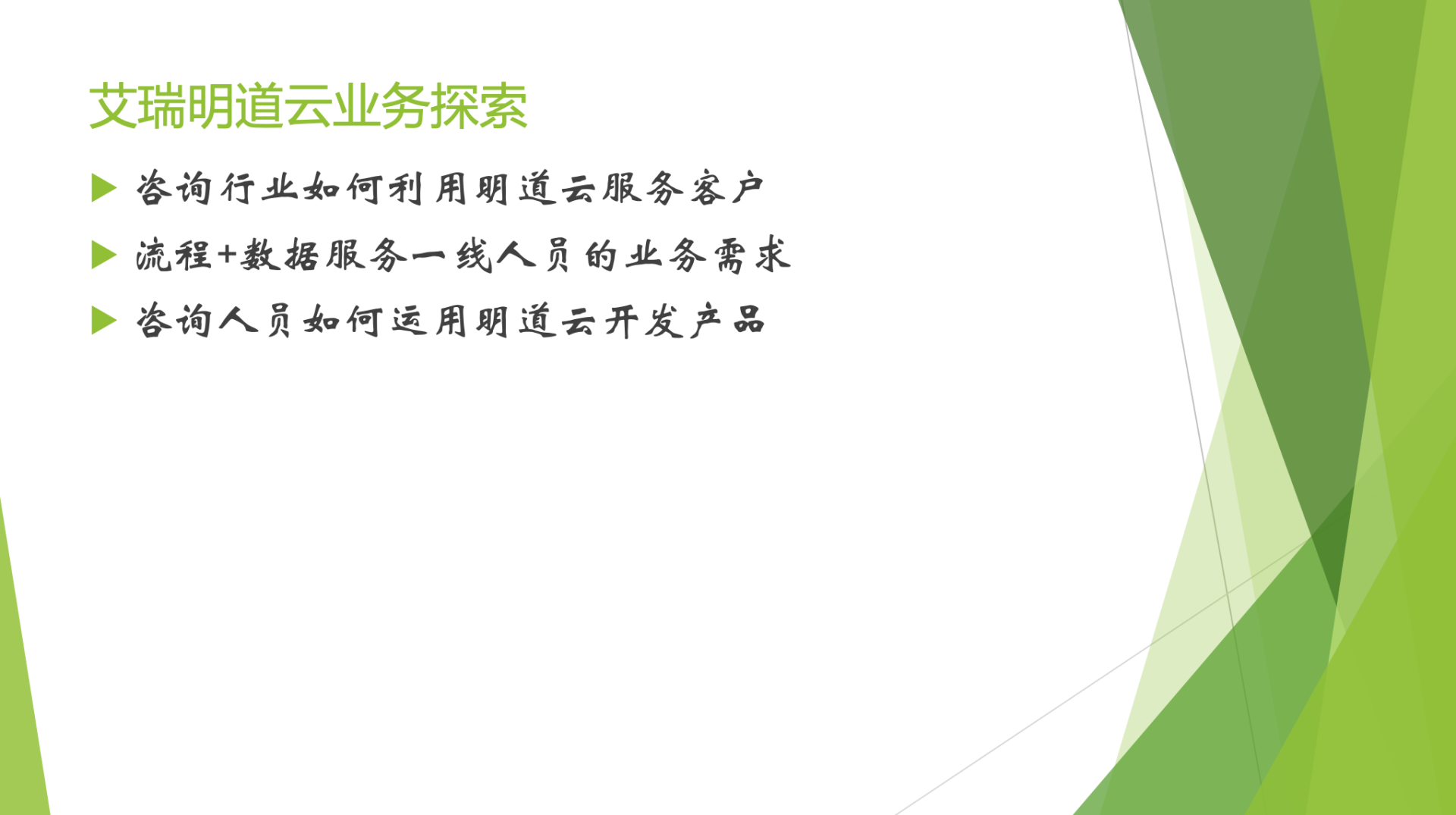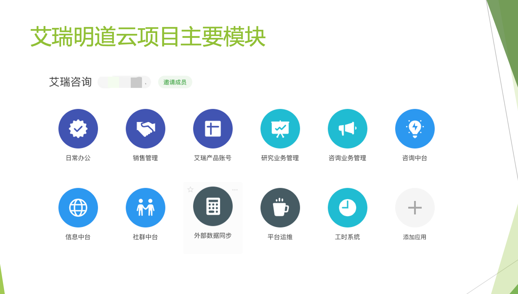 艾瑞咨询,中国新经济与产业数字化洞察研究咨询行业的领导品牌。企业数字化战略研究是艾瑞咨询的重要服务领域。那么艾瑞自身又是如何实现各部门数字化管理呢?本期直播课中,艾瑞咨询的 CTO Jason 将分享他们的数字化内部管理系统和经验。艾瑞使用明道云开发多种内部协作应用,涵盖日常办公、业务管理、外部数据同步、工时系统,以及多个业务中台系统——处处皆精细,步步有门道。无论您是咨询行家还是各行各业的管理者,都必有所获!