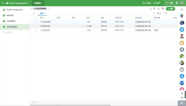明确了是传统管理方法严重影响工作效率的问题后,博翀生物决定为公司上线一个更贴合自身业务逻辑、操作简洁流畅的数字化管理工具——明道云,现阶段先解决项目管理和实验室试剂使用管理的问题。