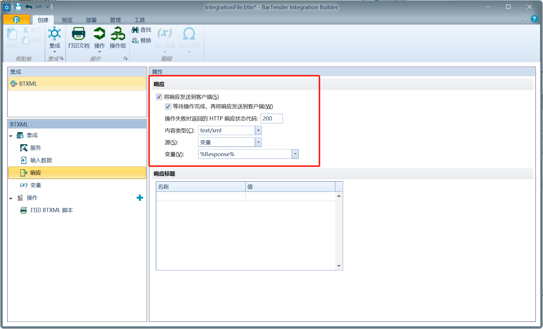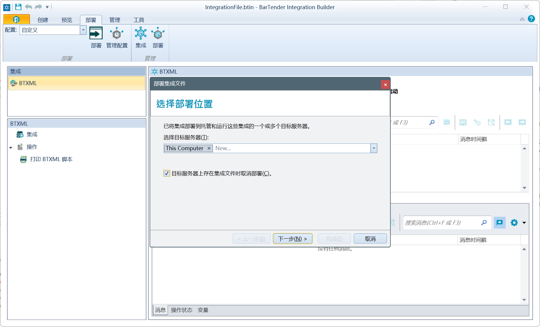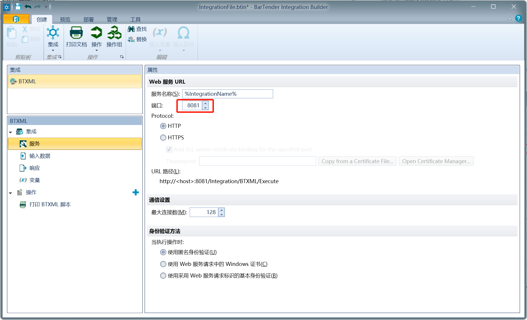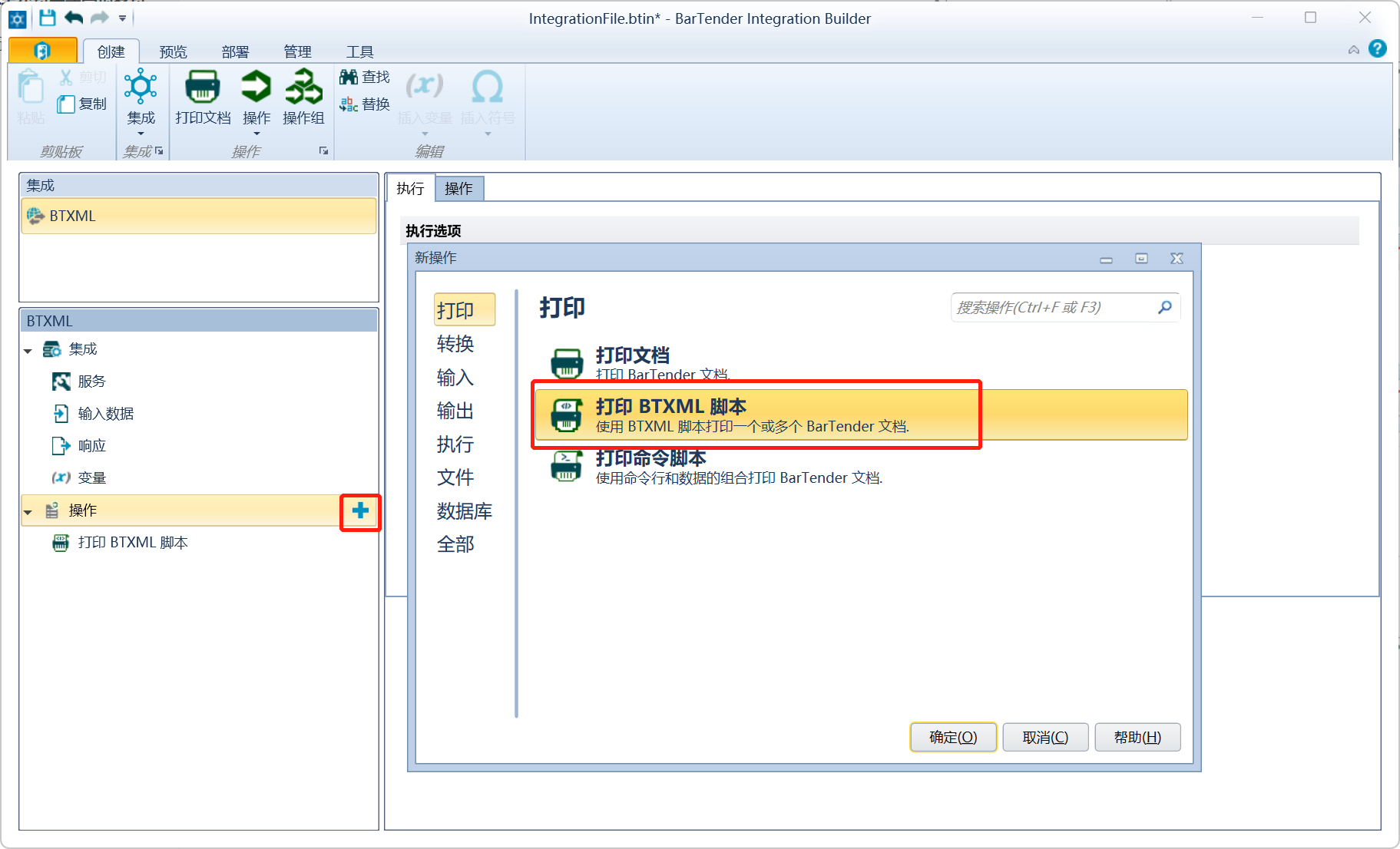 保存设置,生成的集成服务配置文件后缀为 btn,本例中要求将标签文件(.btw)与.btn 文件放置于同一个文件目录。