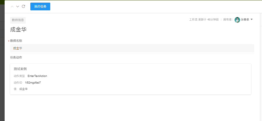 例如:成老师绑定到“测试案例”的动作任务里,并点击执行。