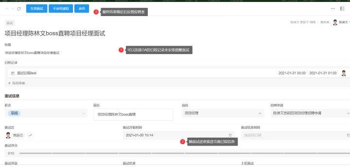 面试过程管理:确认面试邀约后,自动生成面试安排
