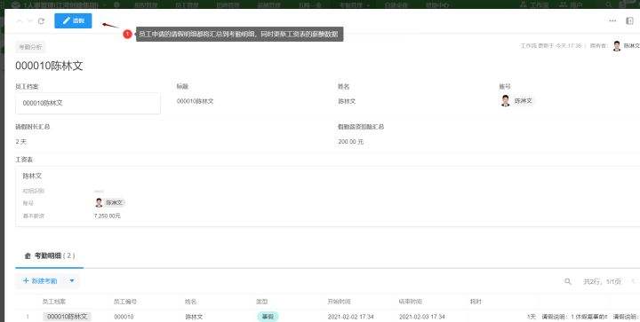 员工的请假明细都会汇总到考勤明细,并更新到工资表的薪酬数据