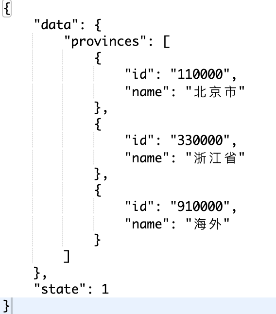 获取一级省份信息