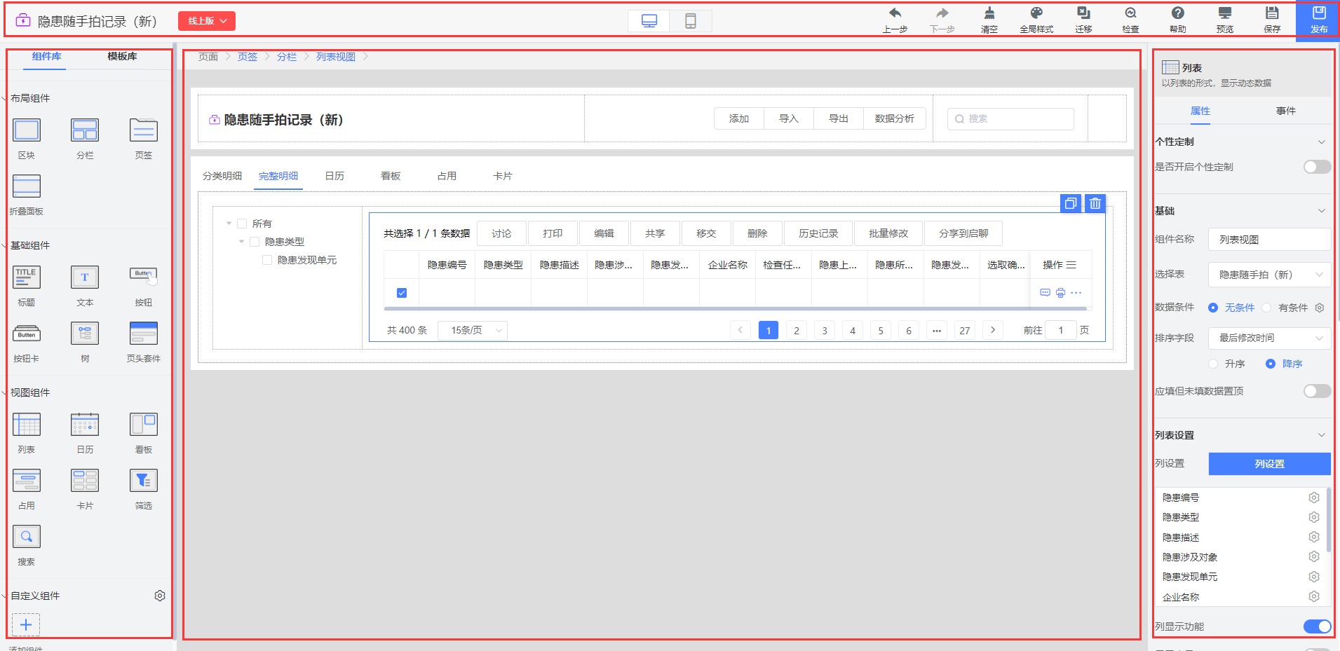 #good idea#页面设计器 无崖子 2023-08-22 08:14:42 分享 收藏 复制链接 新浪微博 微信扫一扫 分享 0 / 579 整个页面分为「顶部操作区」「左栏组件库、模板库」「中栏画布」「右栏属性样式及事件」四个部分,如图: