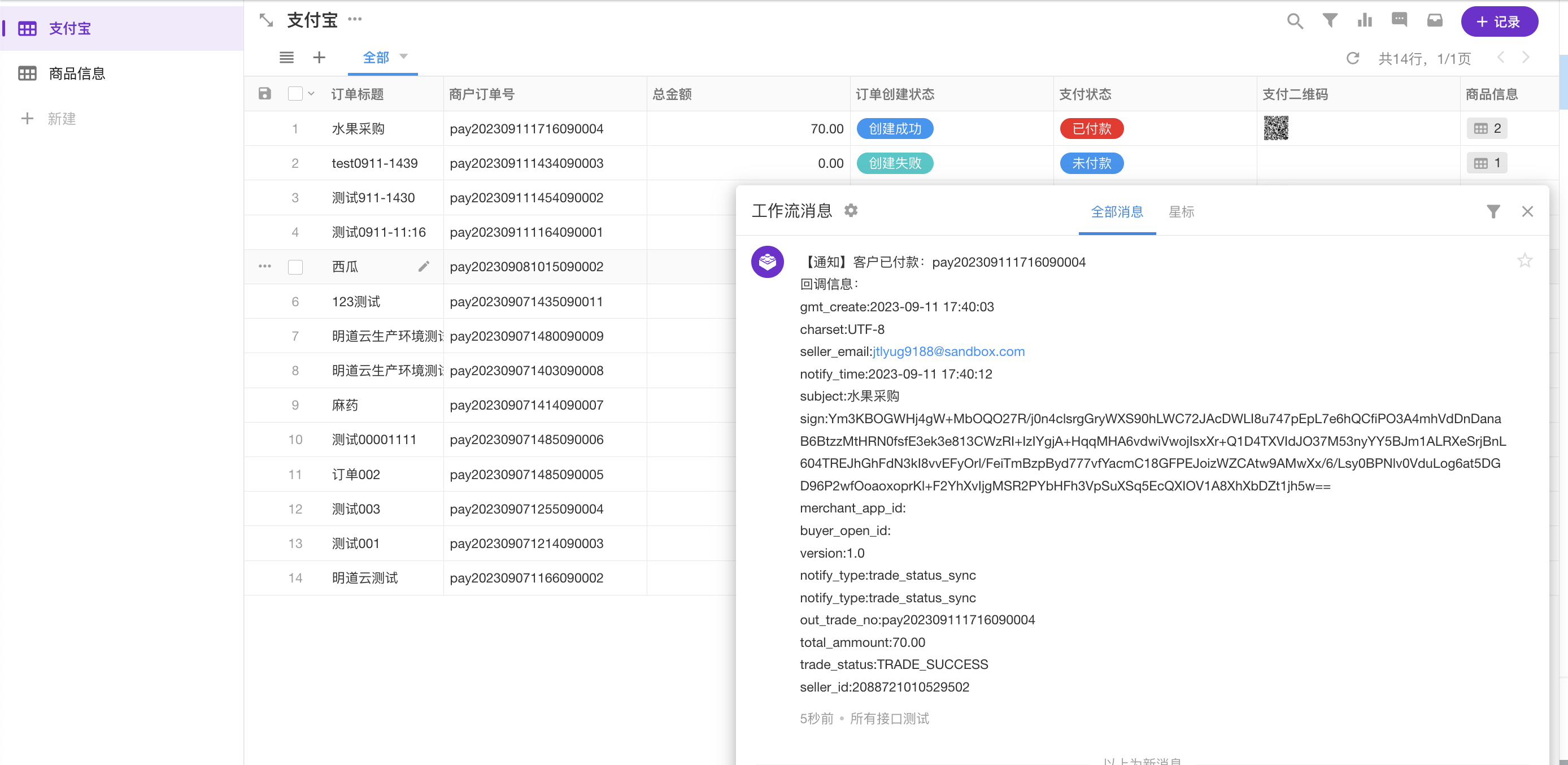 3、扫码支付查看 webhook 结果,扫码完成后可以看到支付状态已修改