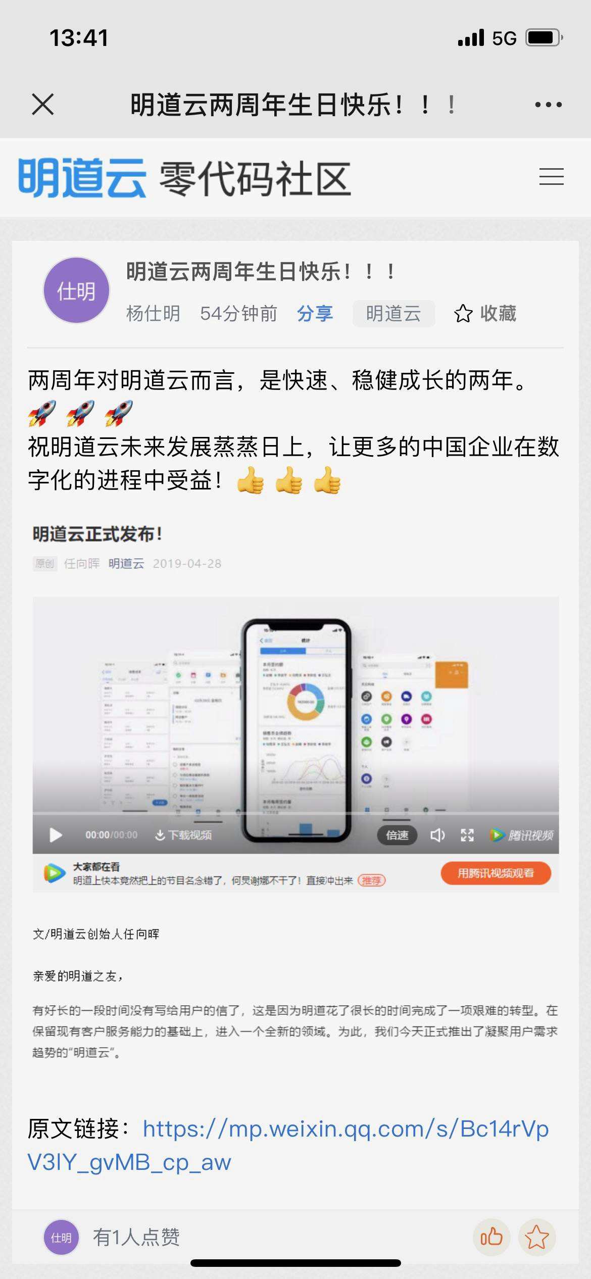 今天是明道云产品发布两周年。早晨,有一位明道用户还专门在我们的社区发帖祝贺。如果不是他的提醒,我们甚至都忘记了这个产品周年庆。