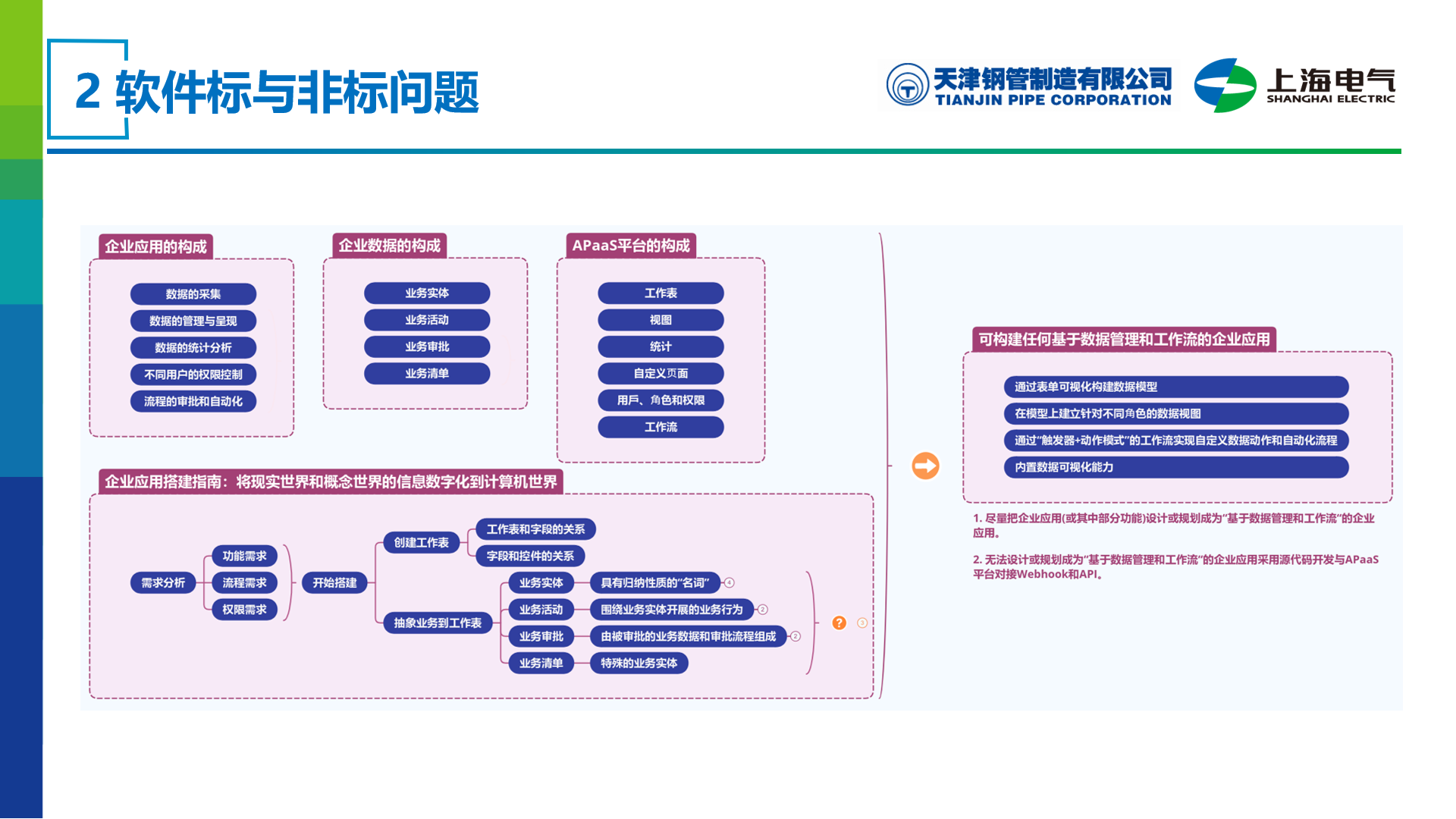 供给侧结构性改革是国家一直重视的发展战略,企业信息化建设领域也在积极探索改革的方向与路线,尤其是传统行业的大型国企。天津钢管制造有限公司自 2020 年接触明道云以来,就开始规划如何用零代码实现集团数字化转型,解决公司多年的信息化管理痛点。2020 年底,天津钢管成功利用明道云完成小型供应商竞价系统,实现零代码 APaaS 在公司内部的首次试水。2021 年,天津钢管计划将明道云零代码 APaaS 在公司内部逐步普及化。