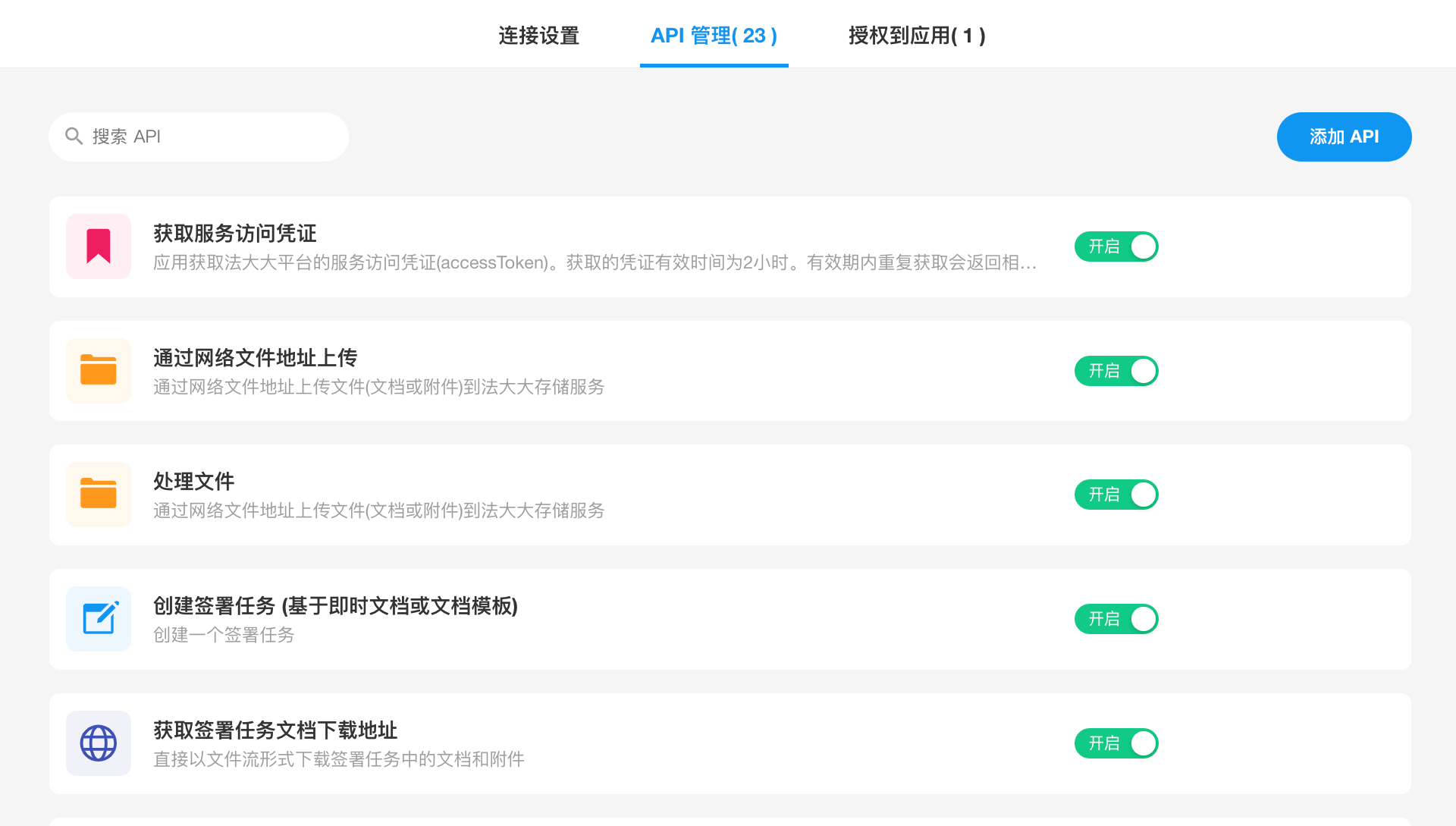 开启对应的 API,下图是对应于法大大的接口调用流程