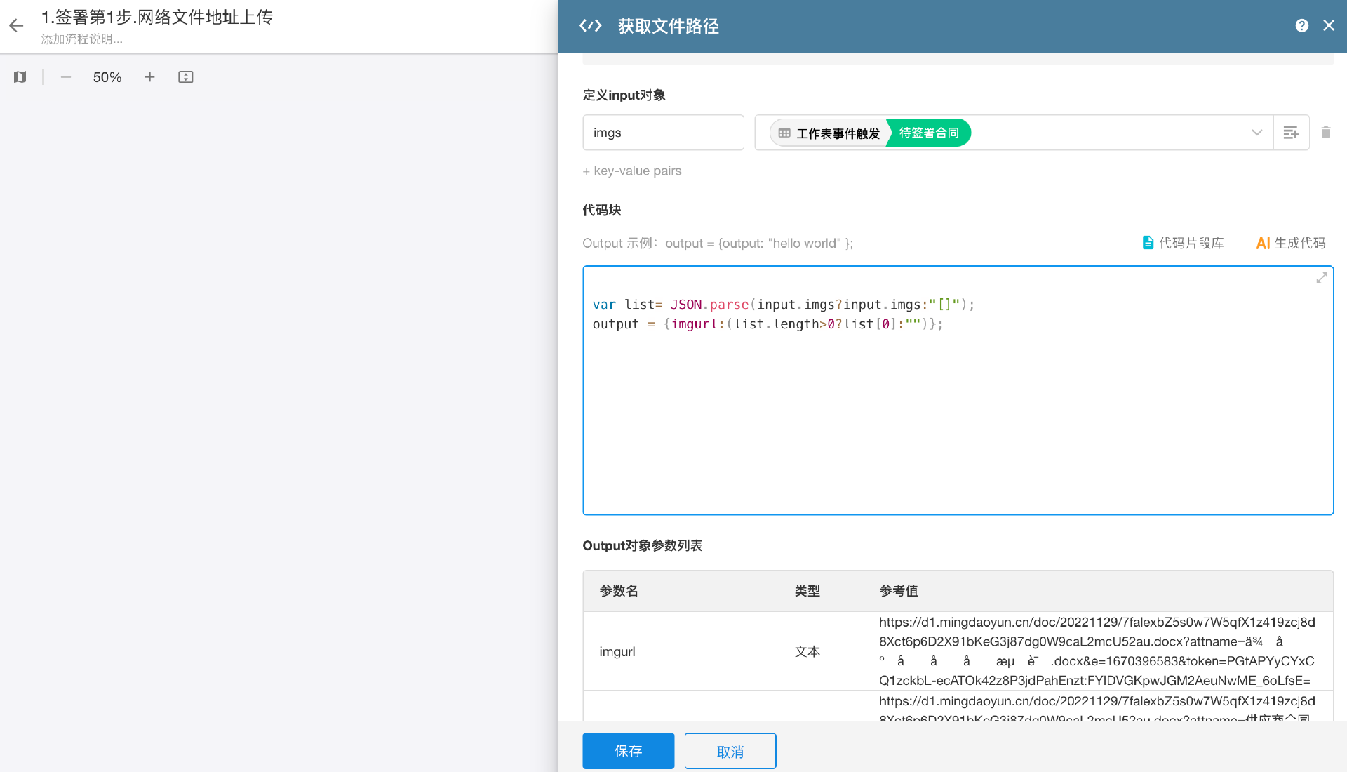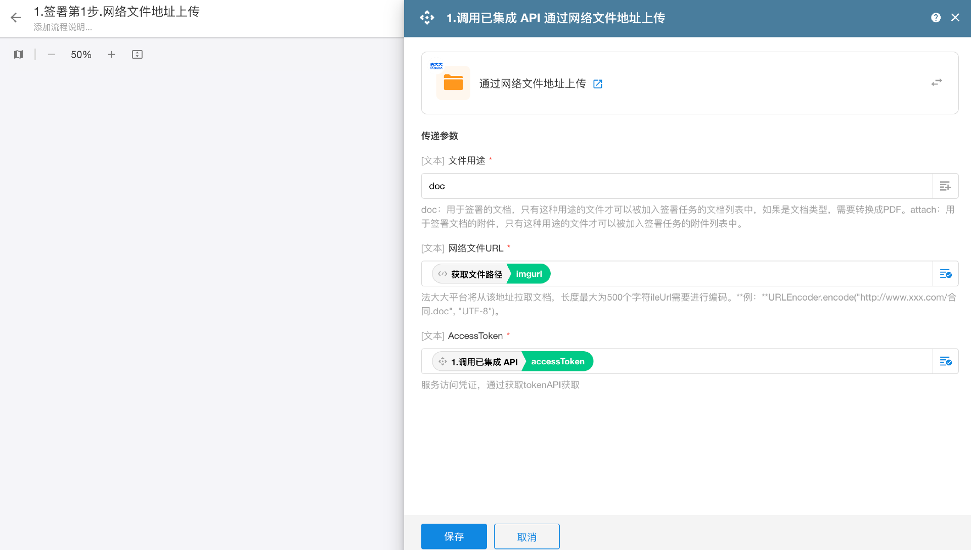 - 通过网络文件地址上传文件(说明:将合同信息从明道云传给法大大)