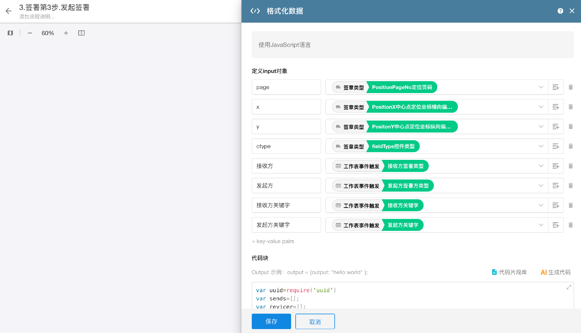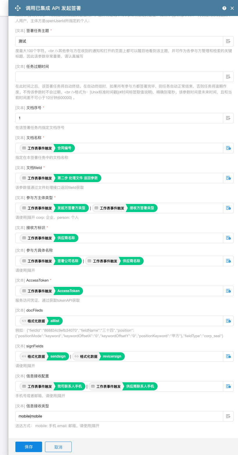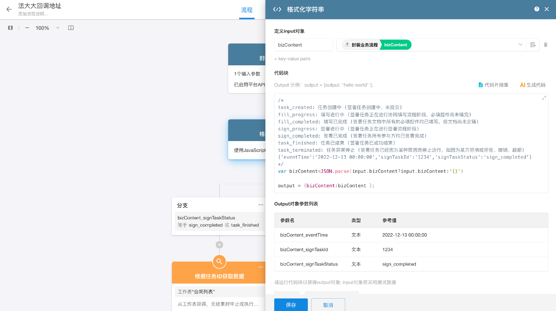 - 用代码块对签署方信息、签署参数子表信息进行格式化处理(代码块见文末代码块 2)