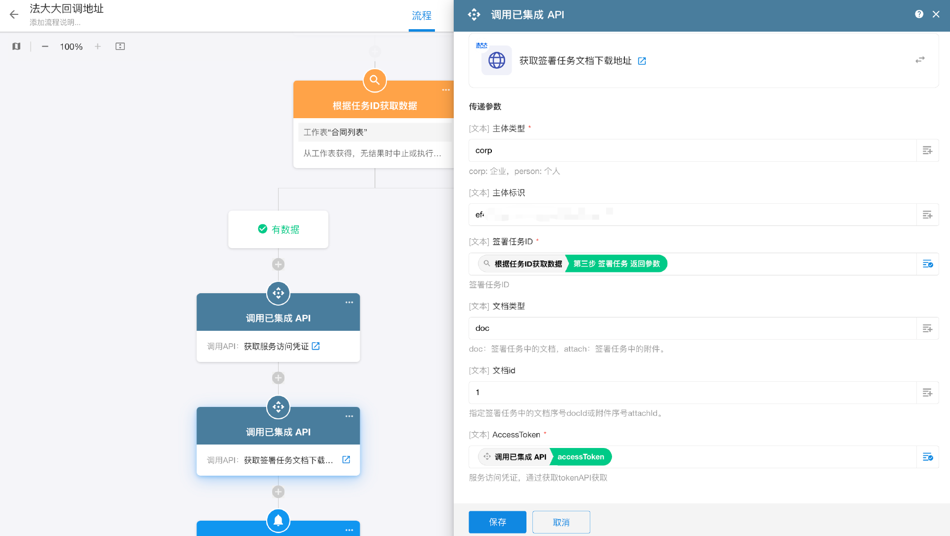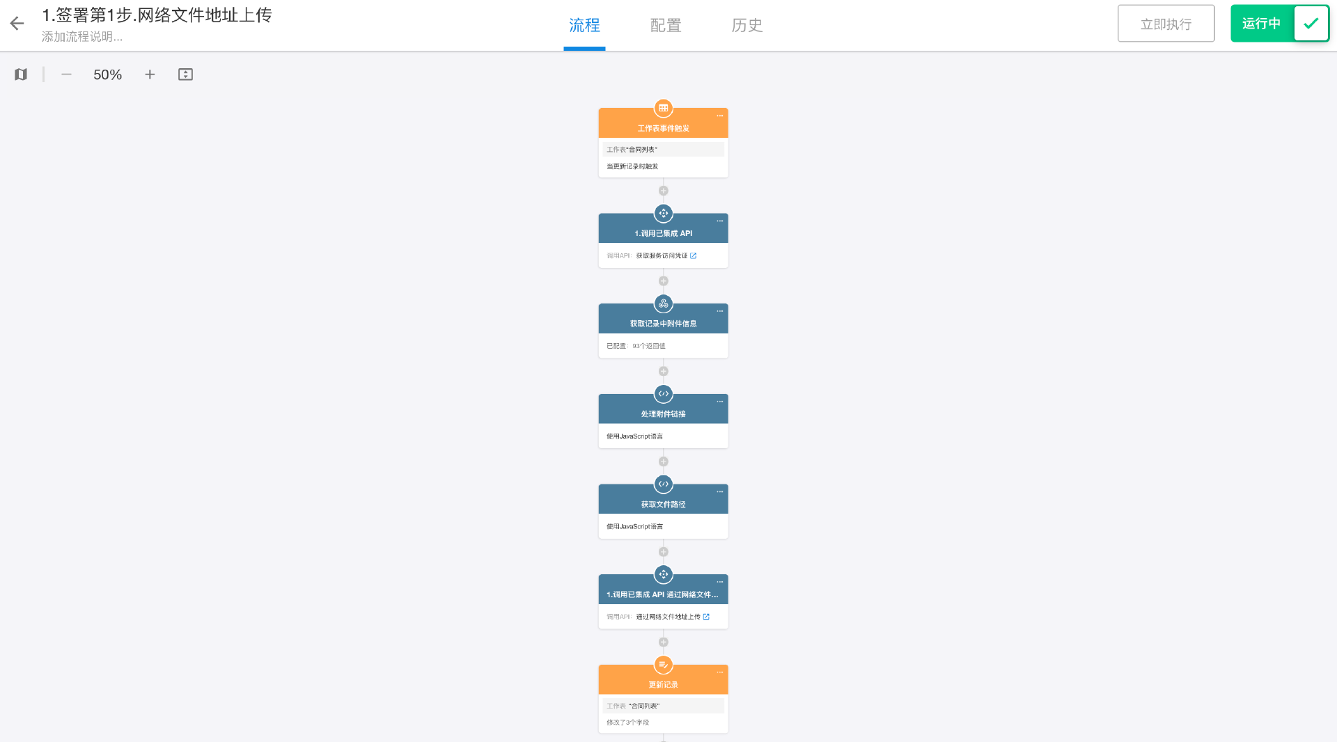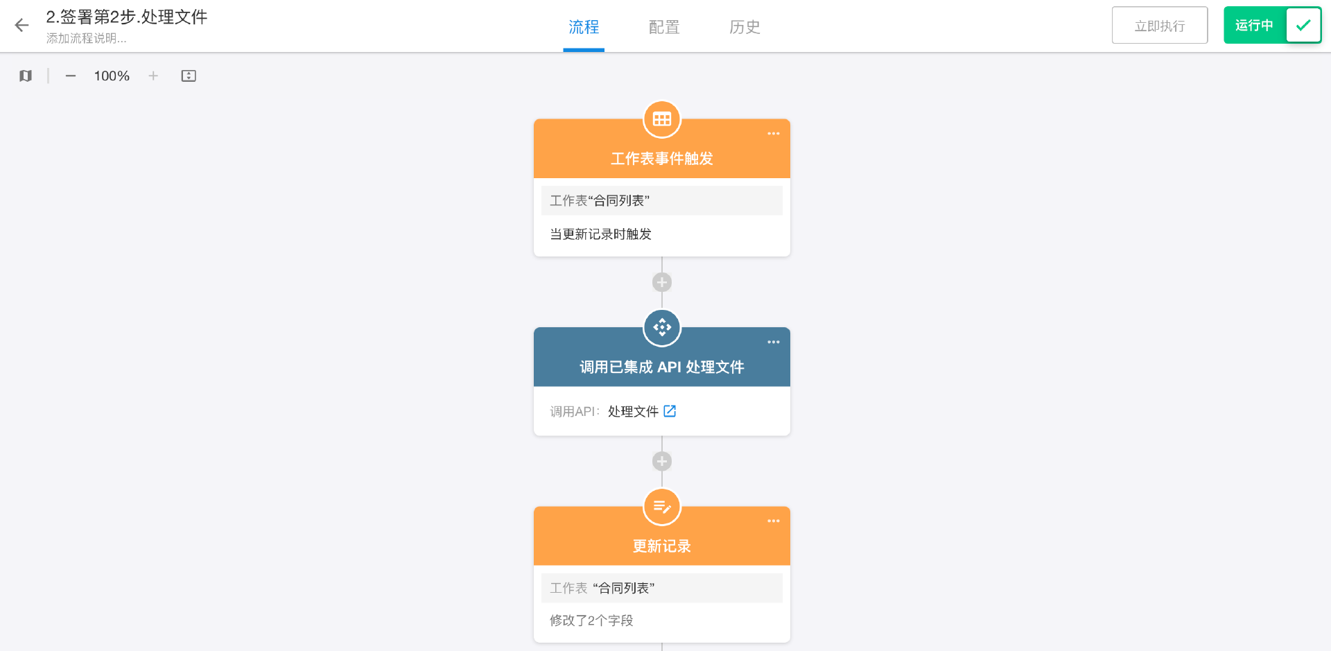 3.配置回调工作流,将双方签署完成的合同 pdf 回写到明道云