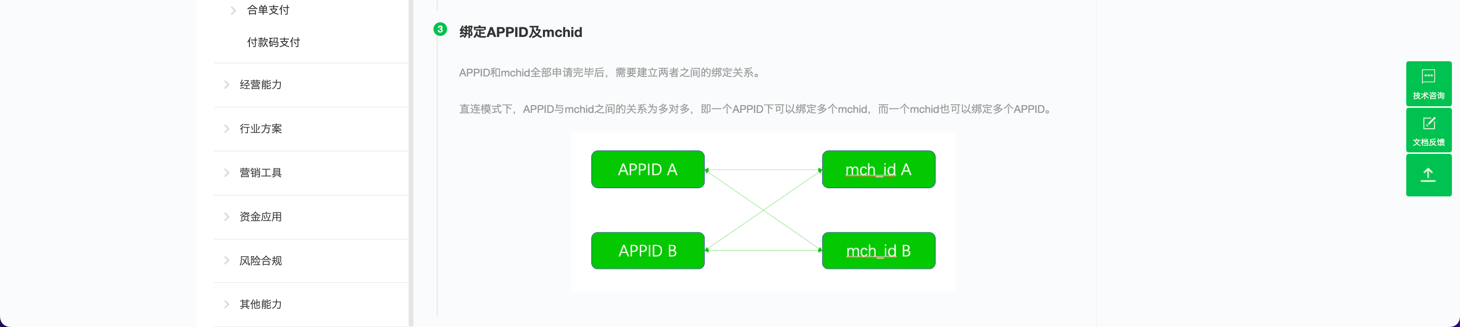 2.并且需要接入微信前需要提前准备好 APPID 和 mchid(商户 ID),以及将 APPID 和 mchid 进行绑定。绑定完成后将 APPID 和 mchid 复制填入连接参数中。