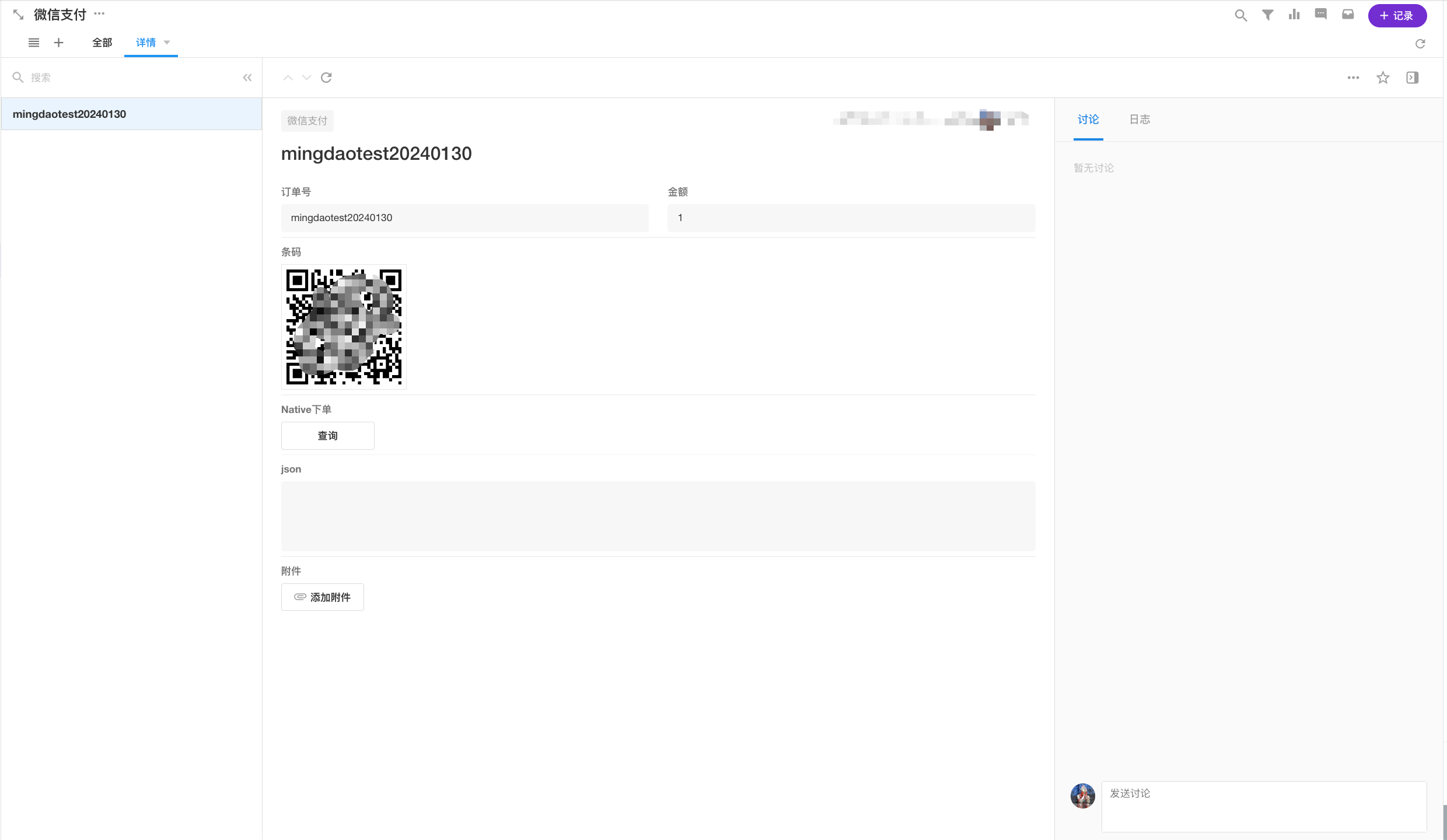 3.在点击测试前,将我们拿到的生成 body 全文参数的值复制填入到我们的 encrypt_content。点击测试后即可查看解密后的结果。商家只需要重新生成一个订单即可验证查看解密内容了。