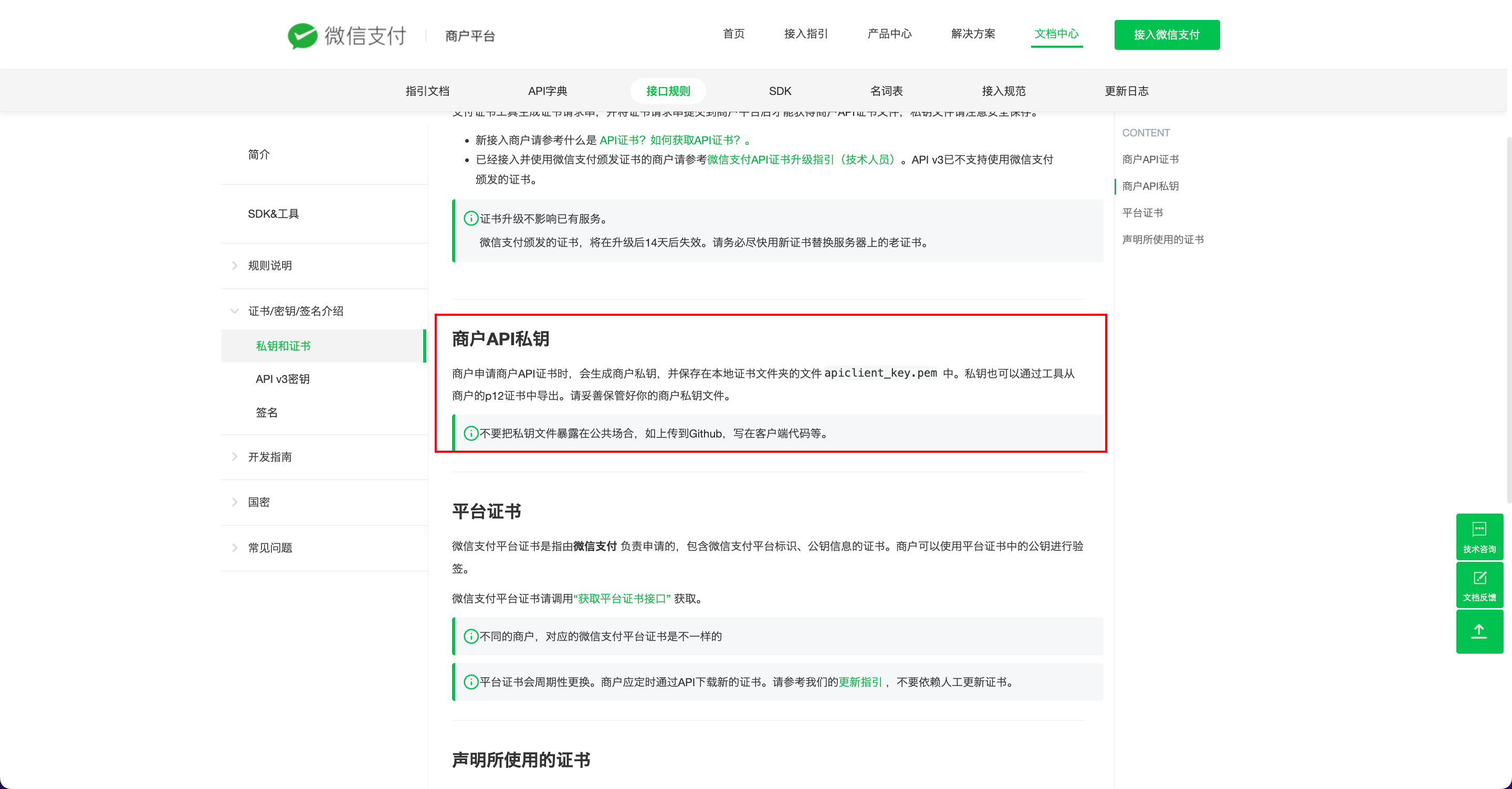 4.下载并配置商户证书。未申请证书的用户请先申请,申请完成后需要将 apiclient_key.pem 文件打开,并将内容全选复制填入连接参数的 apiclient_key 中。