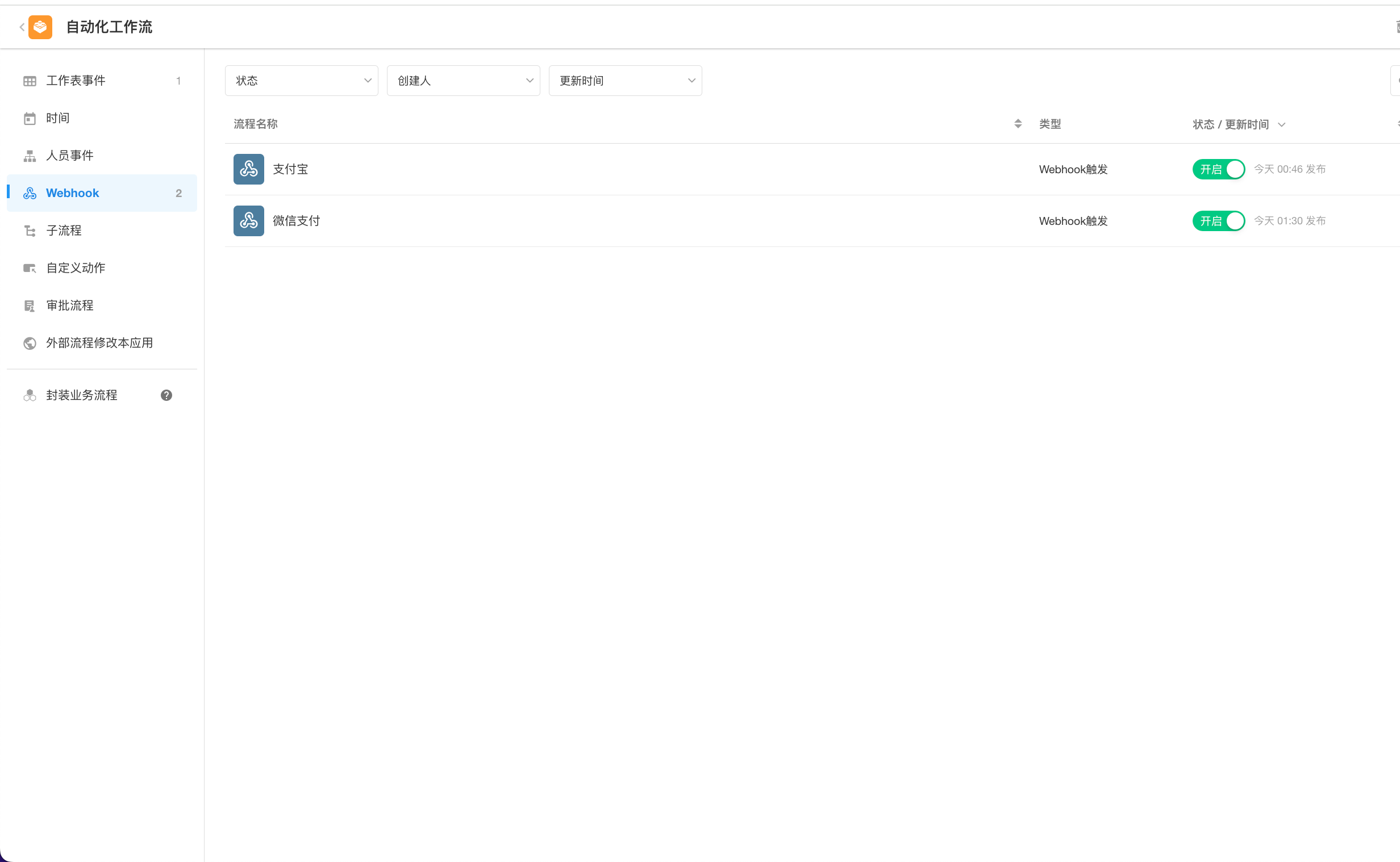 若用户支付后,则可触发工作流刷新关联订单状态。如下: