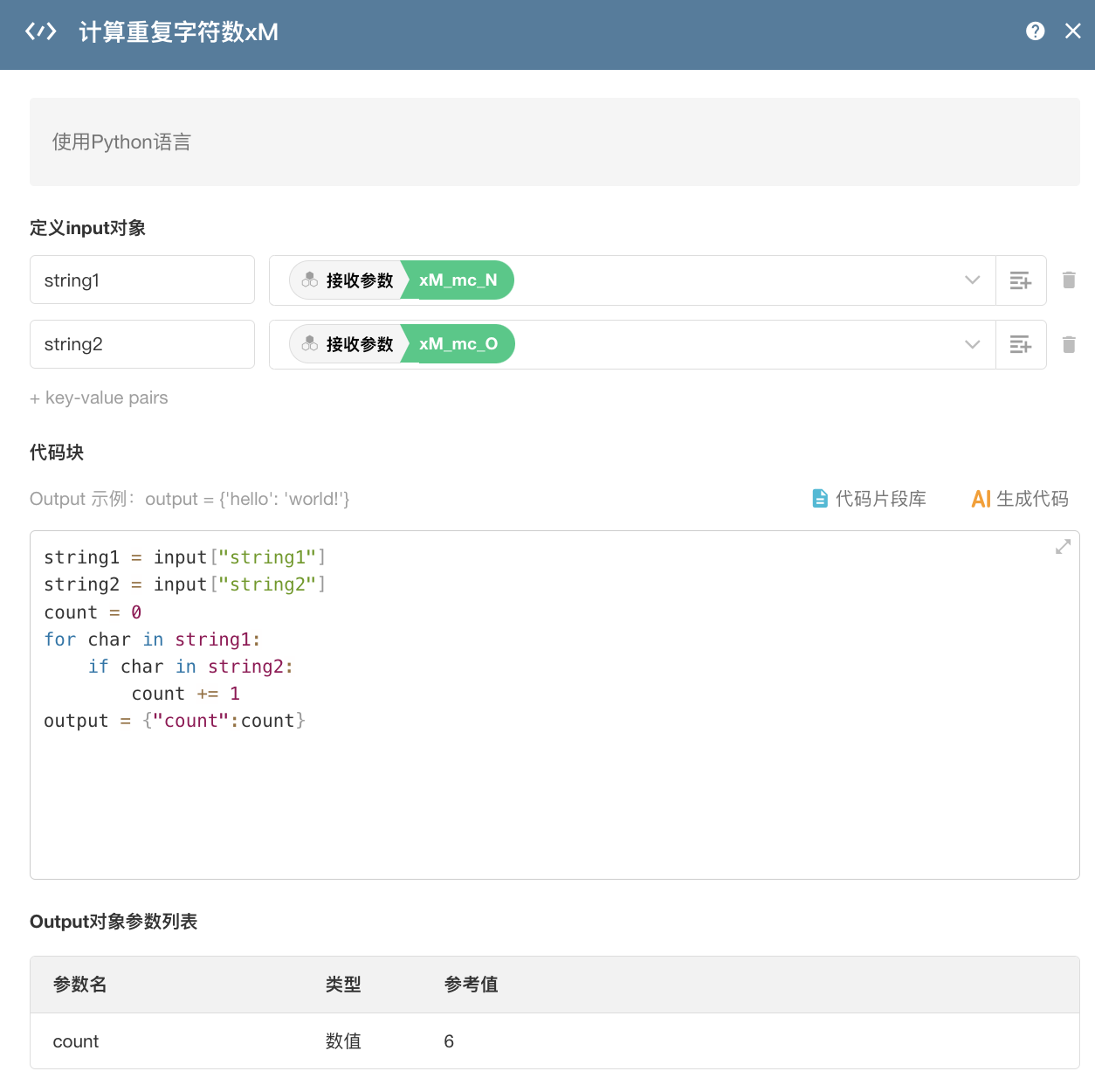 通过代码块对两个字段之间进行比较,得出重复字符数。