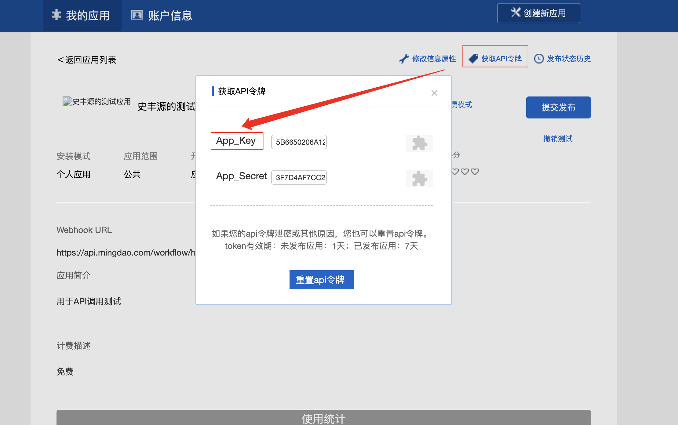 按照如下方式拼接调用参数,其中 app_key 可以从创建的应用处拿到。