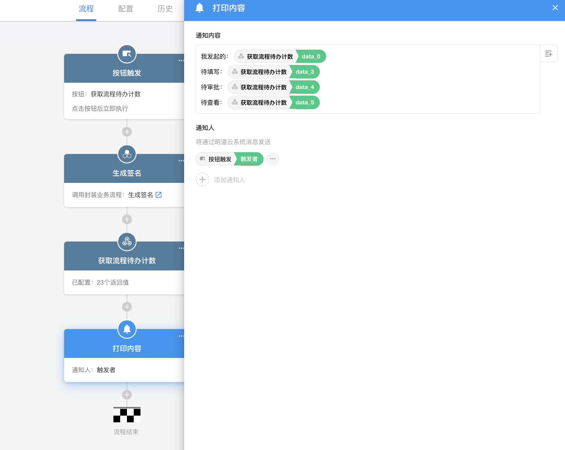 这里以一个简单的获取流程待办计数为例(https://www.showdoc.com.cn/mingdao/9586887535900956),这里我做一了一个表单,将调用所需要的信息存了进去。