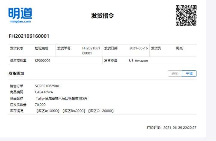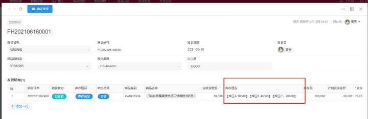 那么首先需要在系统里面将配货单打印出来交给配货员,此时的配货单根据出库的先进先出原理,自动标记不同的存货记录应发数量为多少,分别在哪些库区。